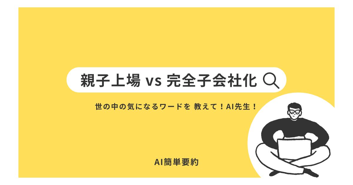 どちらも「親会社と子会社の関係」を扱いますが、資本市場との向き合い方は真逆。 投資家にとっては、チャンスにもリスクにもなり得る分岐点です。