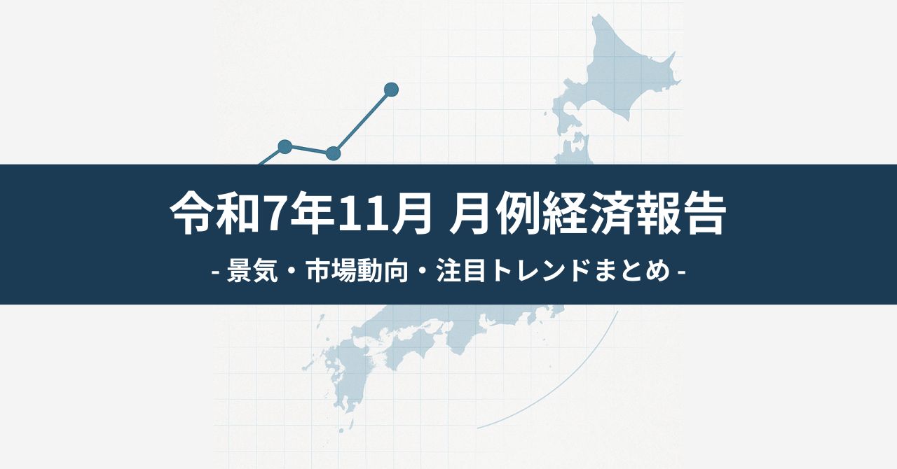 11月の月例経済報告では、景気判断「緩やかに回復」が継続。個人消費や設備投資に持ち直しの動きがみられる一方で、輸出・生産は横ばい、物価上昇・輸出リスクが景気の重しと指摘されています。賃金・雇用改善は続くが、「実感」に差が出やすい局面です。